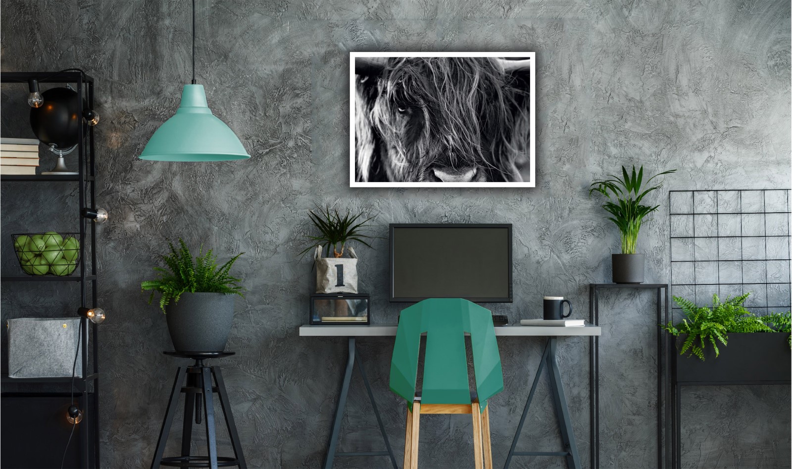 Le yak est mis en perspective en noir et blanc dans un aspect épuré et percutant.