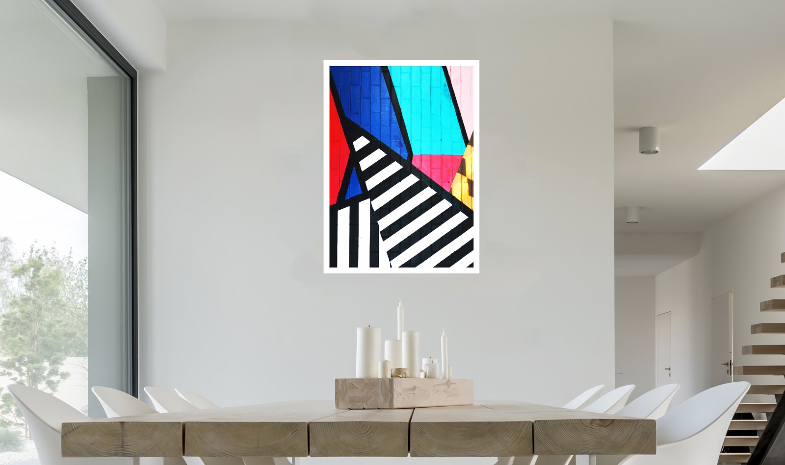 Formes géométriques tant à la fois urbain, barriolées, naïfs, cette illustration enchantera votre séjour.