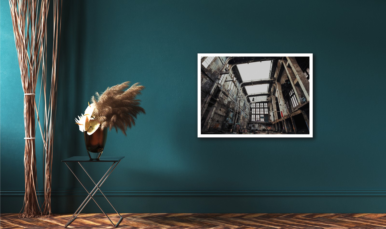 Tableau déco en PVC d'un superbe paysage urbain dans un hangar. Le tableau est fierement imprimé en France sous plusieurs formats.